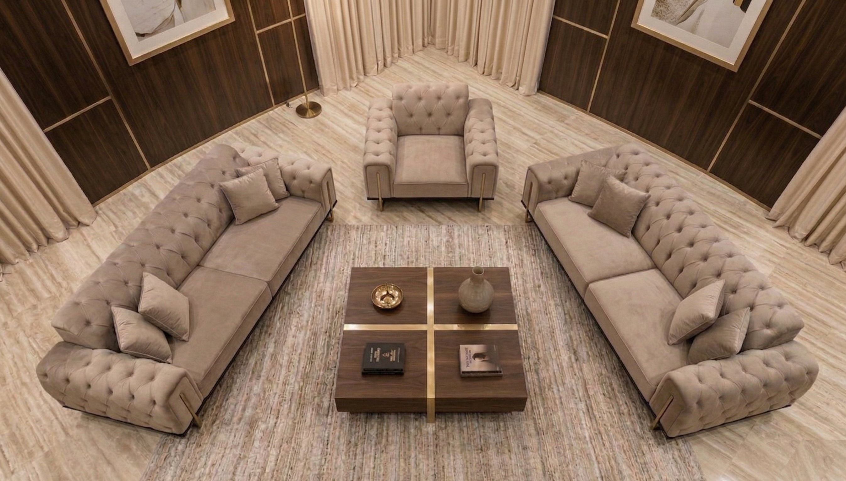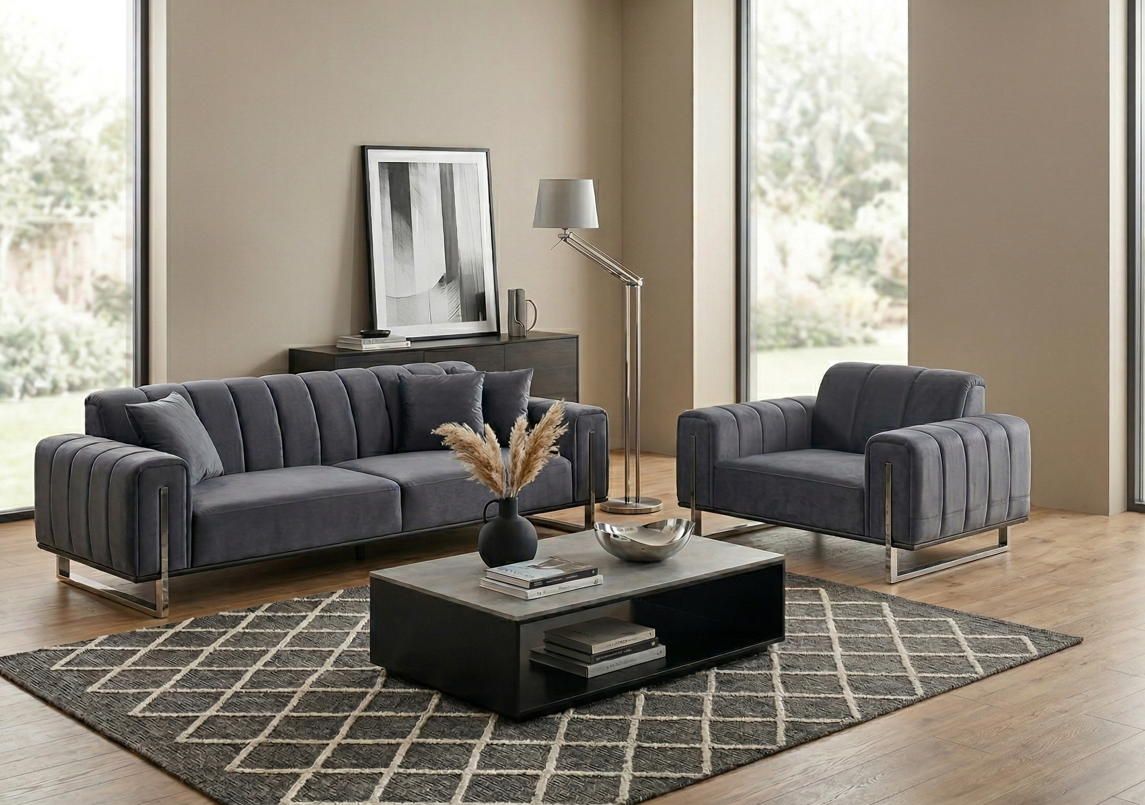 Lucas Grid Sofa Set mit Steppung – 2 Sofas & Sessel für modernes Wohnzimmer (Lagerverkauf) Das Lucas Grid Sofa Set vereint anspruchsvolles Design mit hohem Komfort...